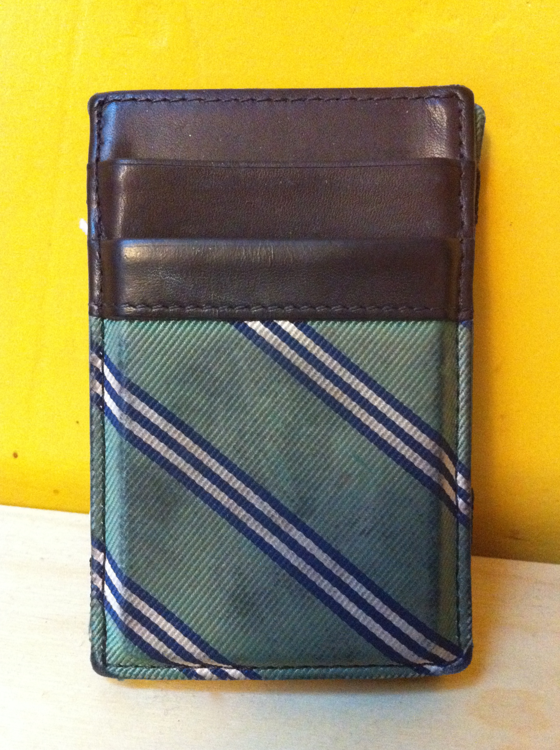 In the end, I stood my ground and got the green and navy wallet. My mother, unsatisfied, bought me the pink flowery one as a gift, “for when the other one gets worn out!” But, as you can see here, the green wallet has taken a beating but is still going strong.